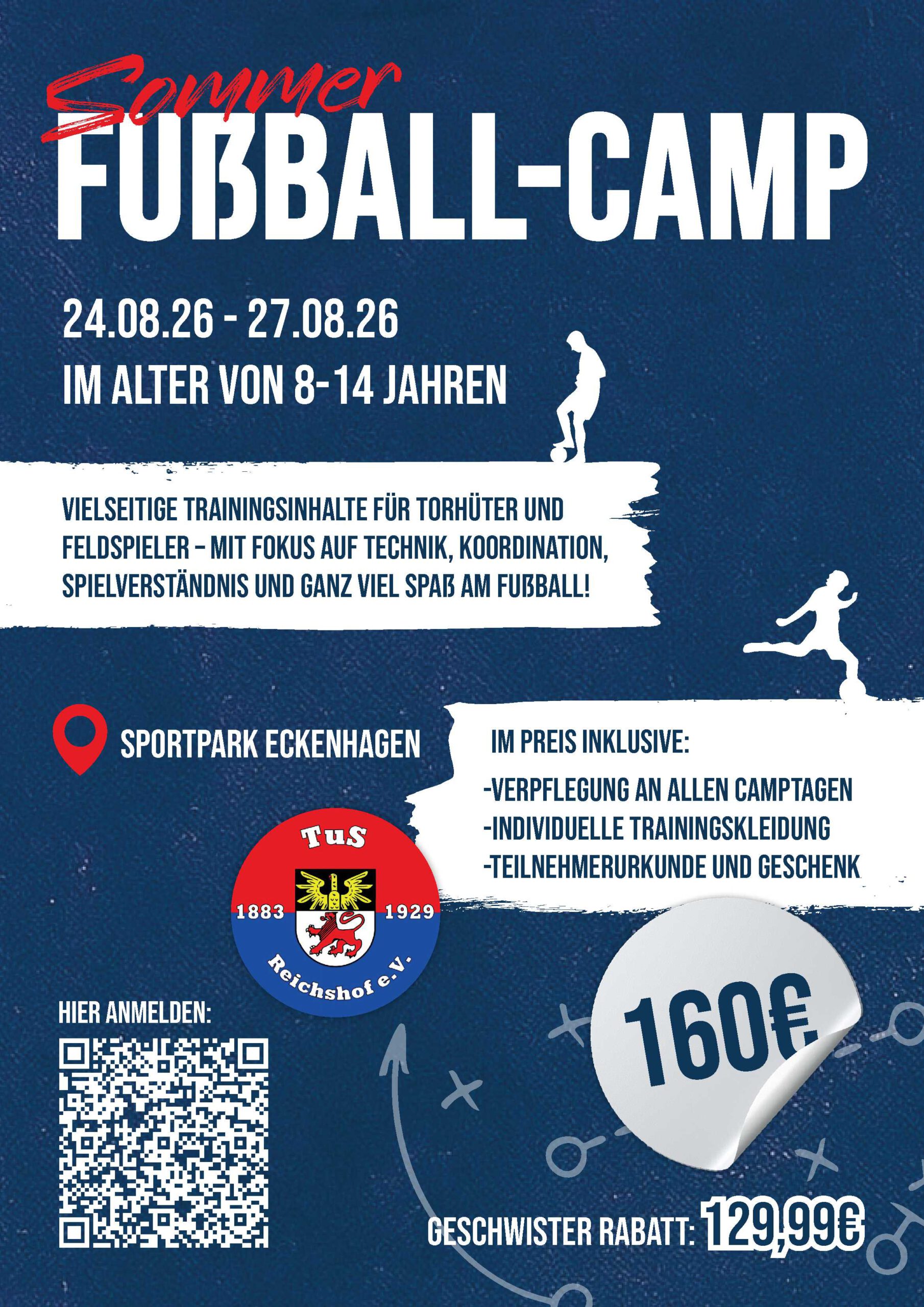 24. – 27. August 2026 | 9:30 – 15:00 Uhr 📋 Alle Infos auf einen Blick Vier Tage Fußball pur Zwei bis drei Trainingseinheiten pro Tag Trainingsset: Hose & Trikot mit Name und Wunschnummer Verpflegung inklusive: Mittagessen, Getränke und Obst Teilnehmerurkunde und ein kleines Geschenk für alle Kinder Alter: 8 […]