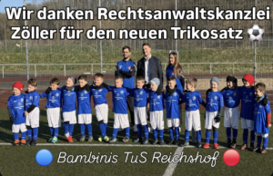 Unsere Bambinis vom TuS Reichshof dürfen sich über einen neuen Satz Trikots freuen! Möglich gemacht hat das die Rechtsanwaltskanzlei Zöller, die unsere jüngsten Kicker damit großartig unterstützt.